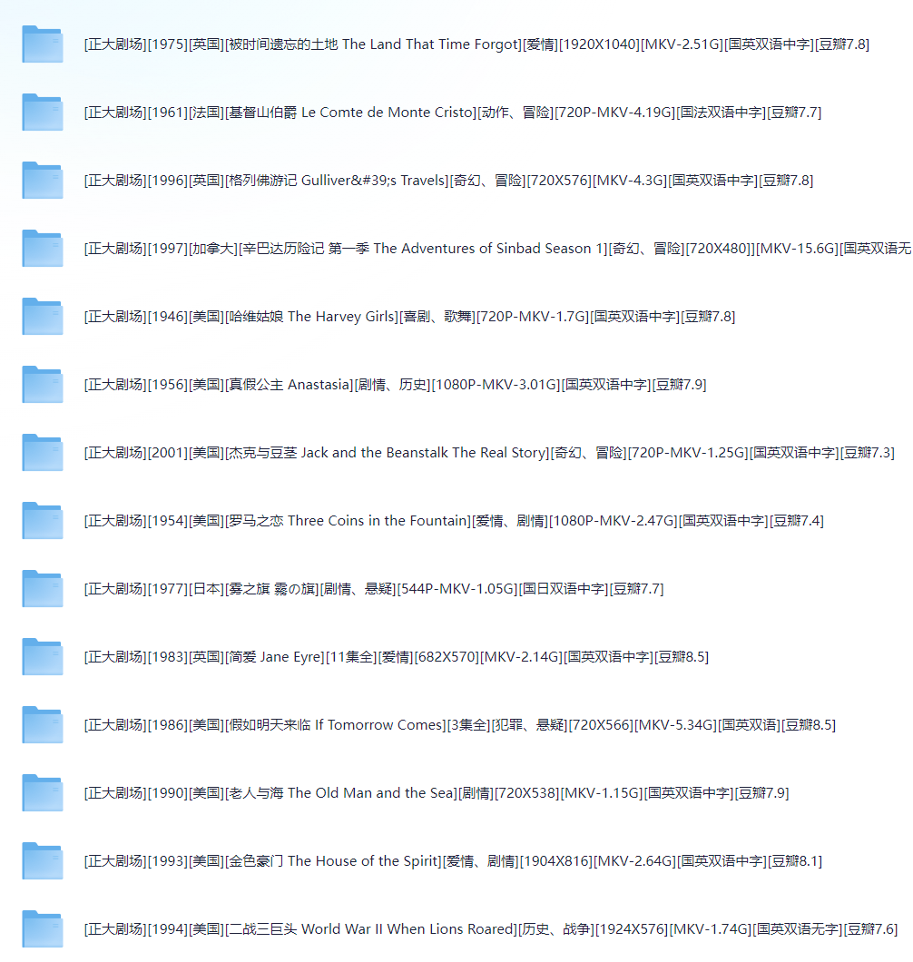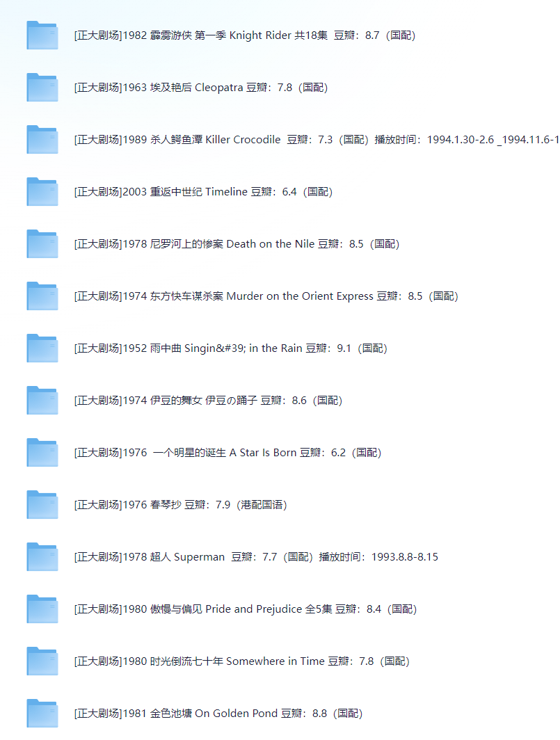 合集影片共62部由上影和央视译制配音.